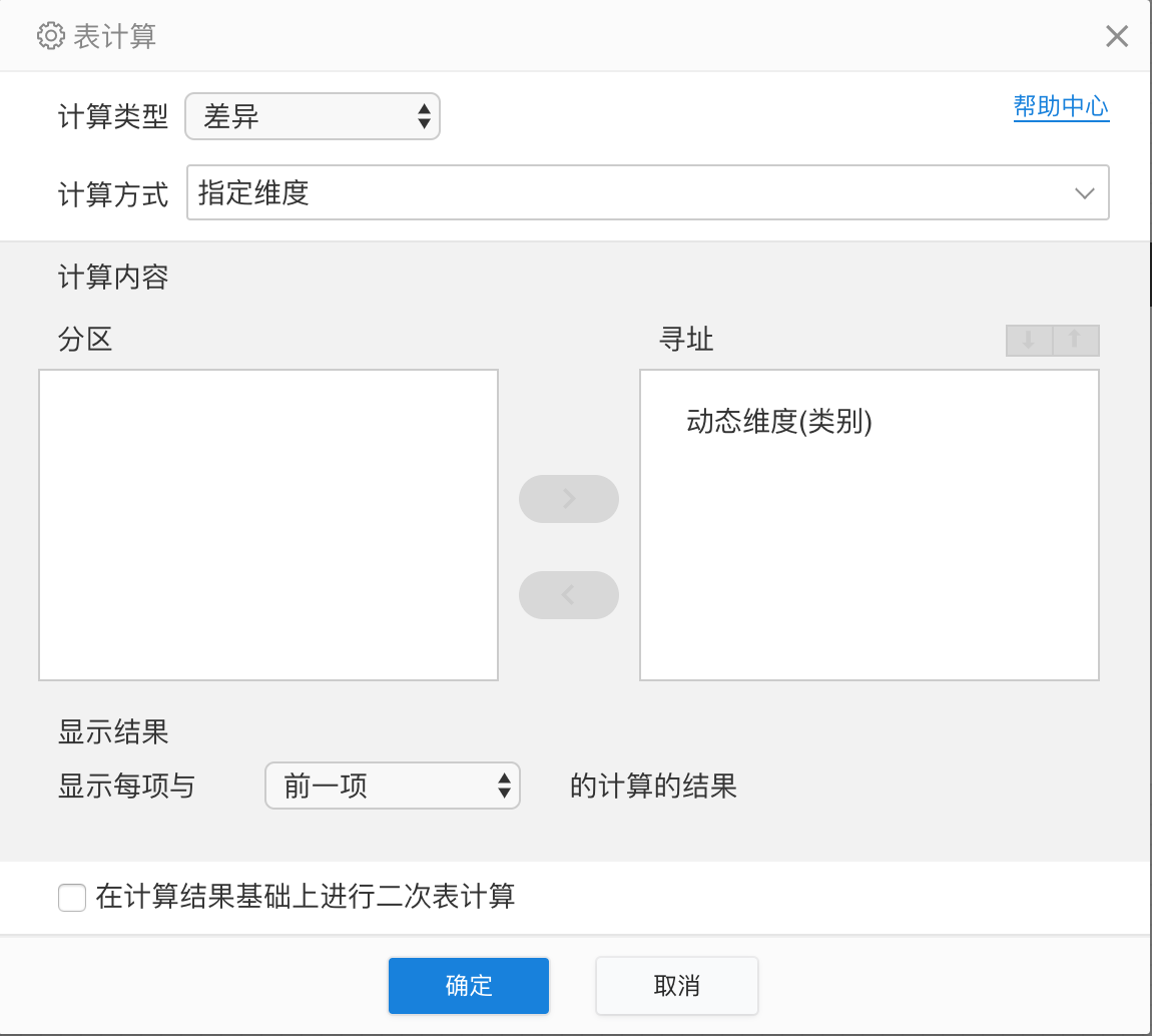 可对动态度量的各个维度做表计算,动态维度切换维度指标时,度量依据的维度也随之切换。