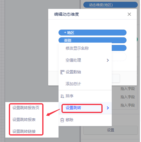 编辑动态维度/度量时,可分别对每个维度和度量字段设置跳转。