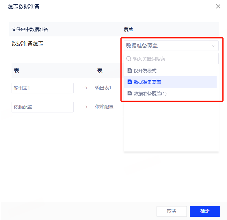 覆盖数据准备:需要指定被覆盖的数据准备(默认选择同路径同名数据准备);原数据准备的依赖关系将由新数据准备继承。