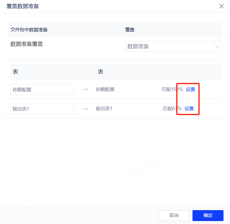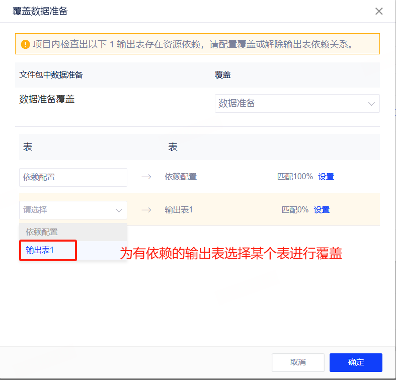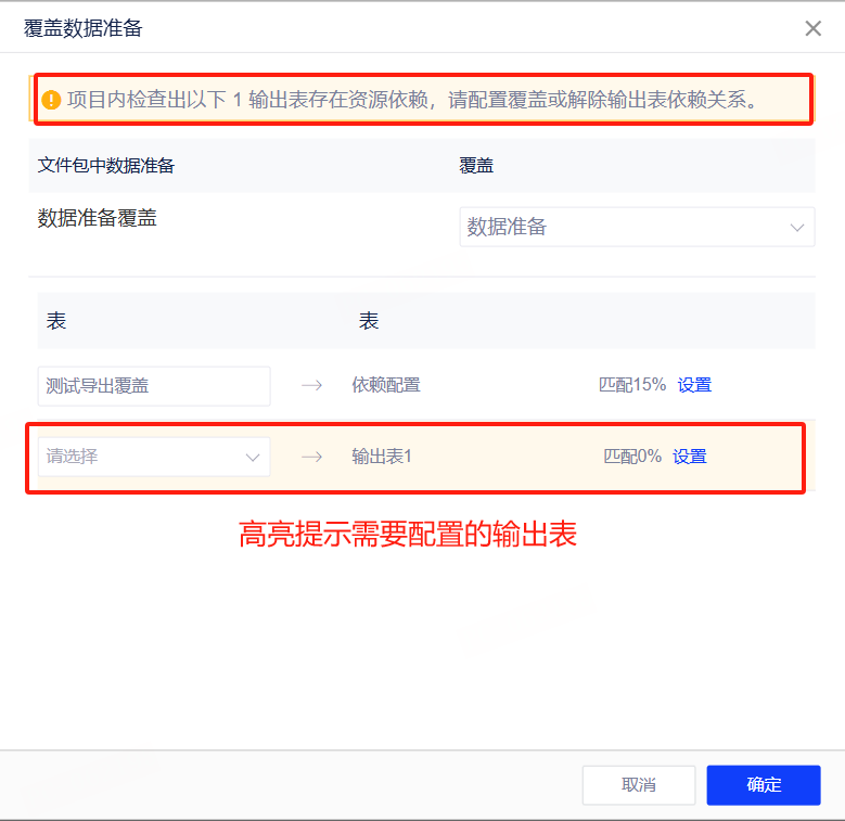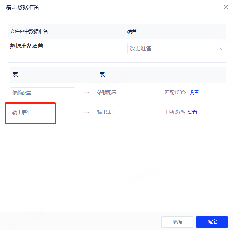 注意:覆盖的输出表和数据准备导入方式下的输出表保持一致。