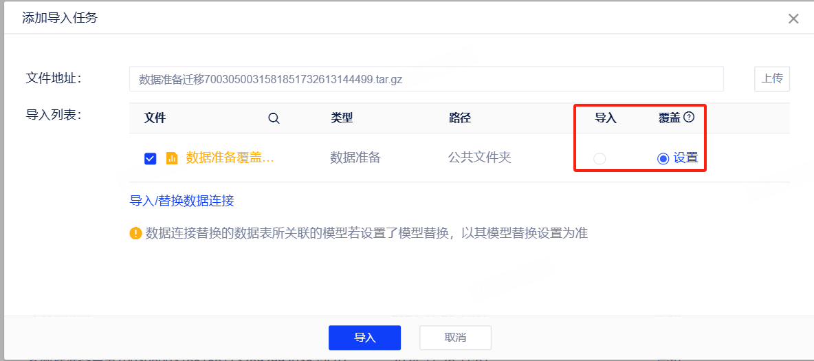 (3)导入类型:可选择直接导入或者覆盖已有数据准备;