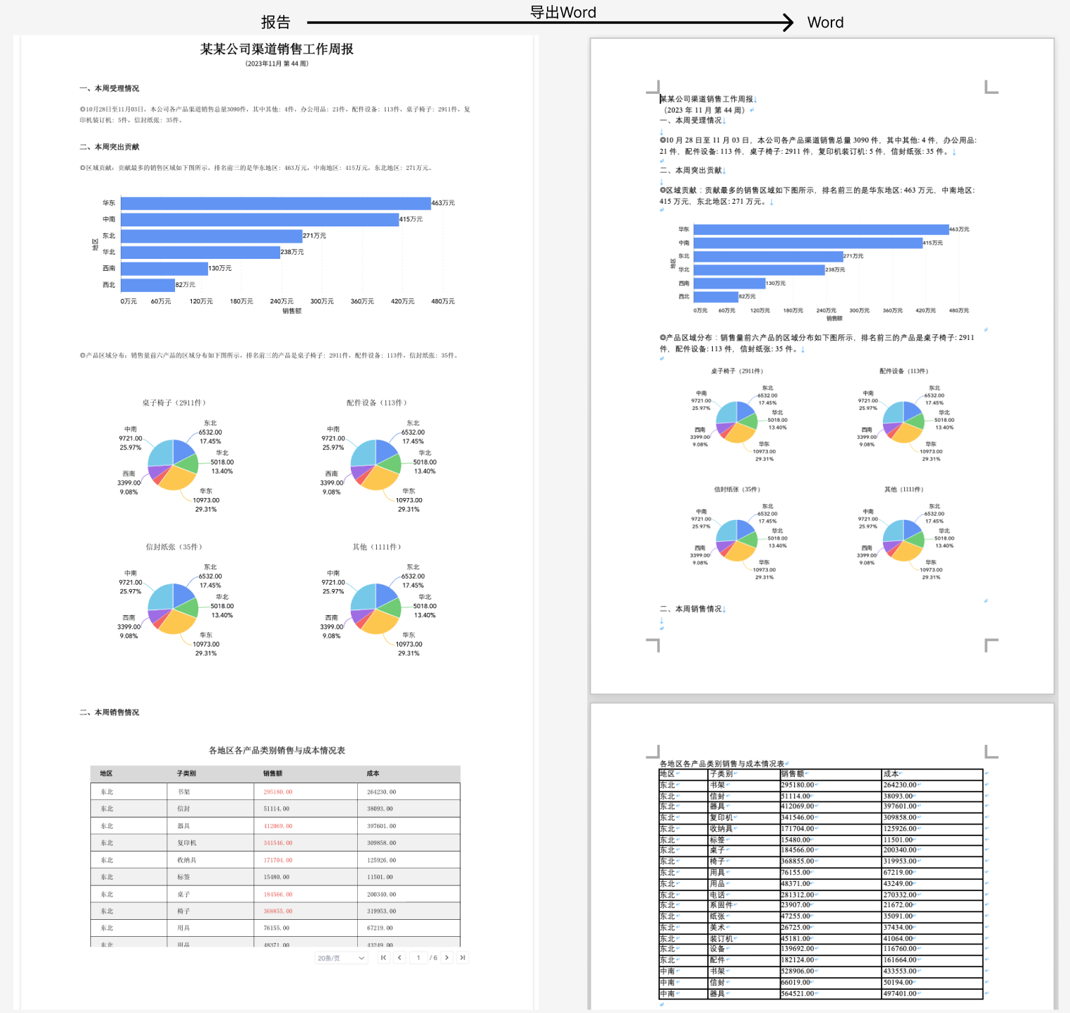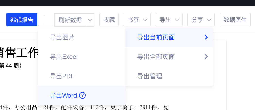 当您需要将报告中的文字、表格、图表等导出到Word中,并进行二次处理时,可以使用导出Word功能。