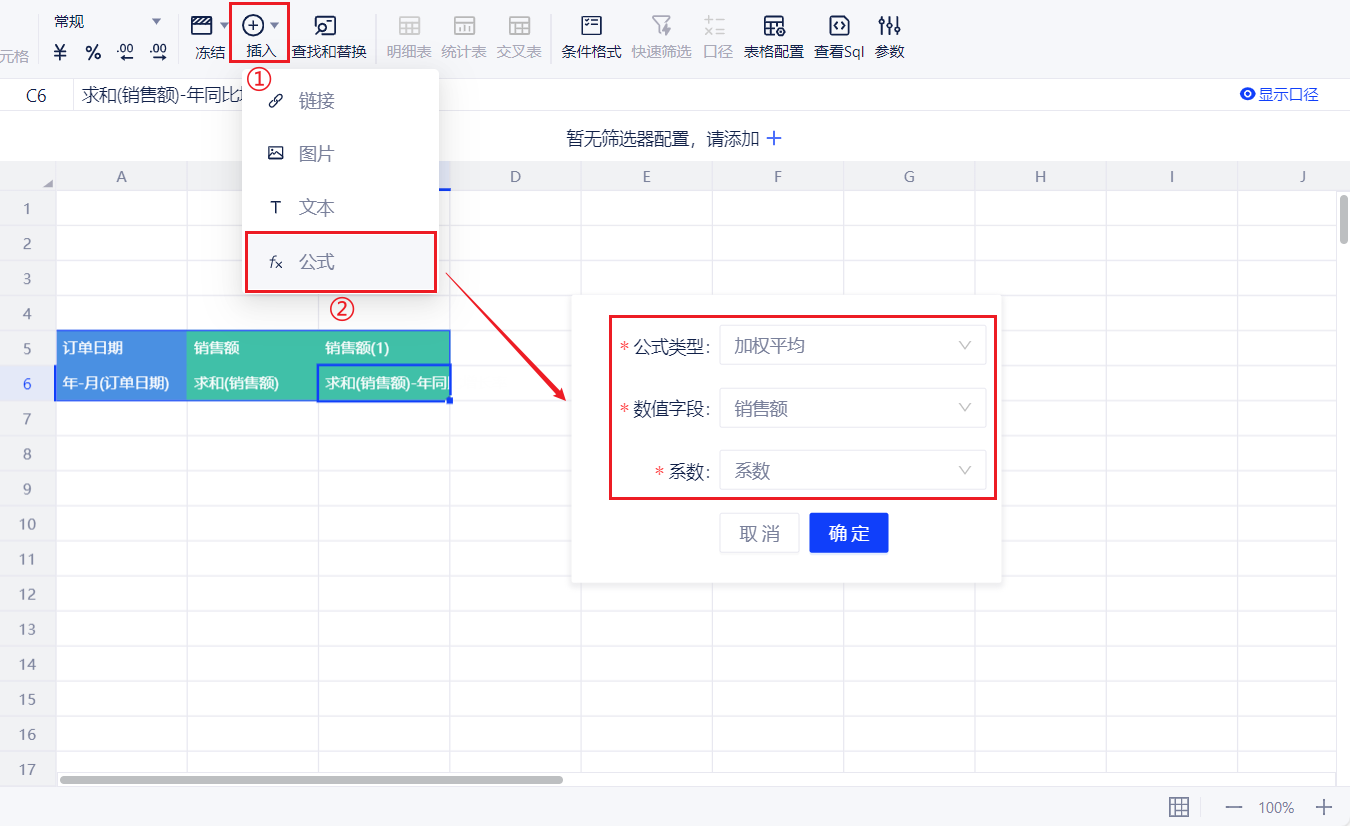 制表人可以配置数据的同环比、加权平均、占比等各类计算公式以体现数据的变化,用户可以对数据有更多的了解和洞察。