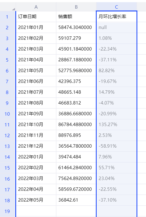 - 支持环比增长(%):计算本期和上期相比较的增长率。