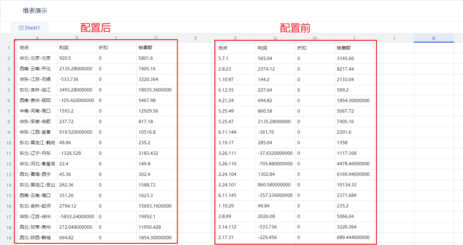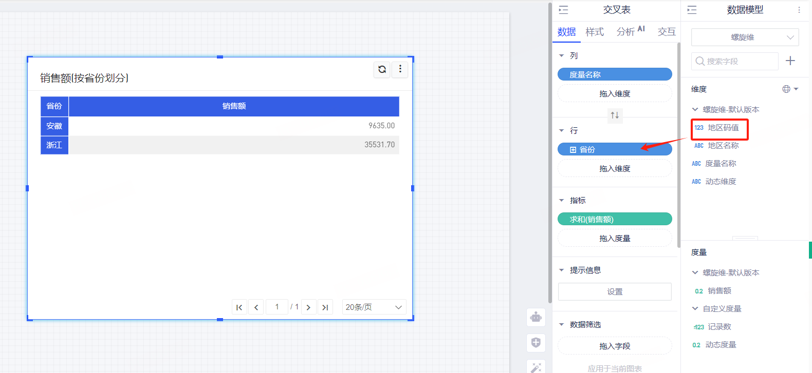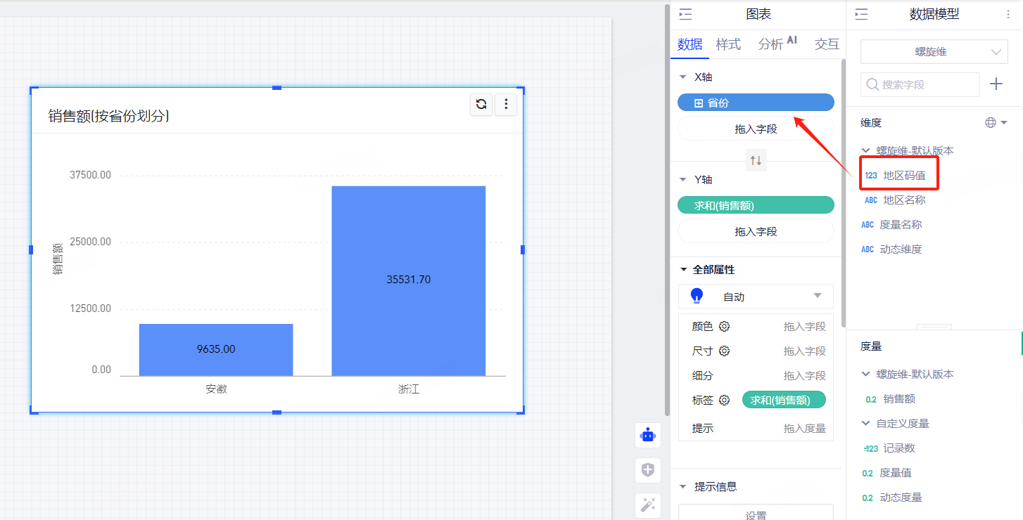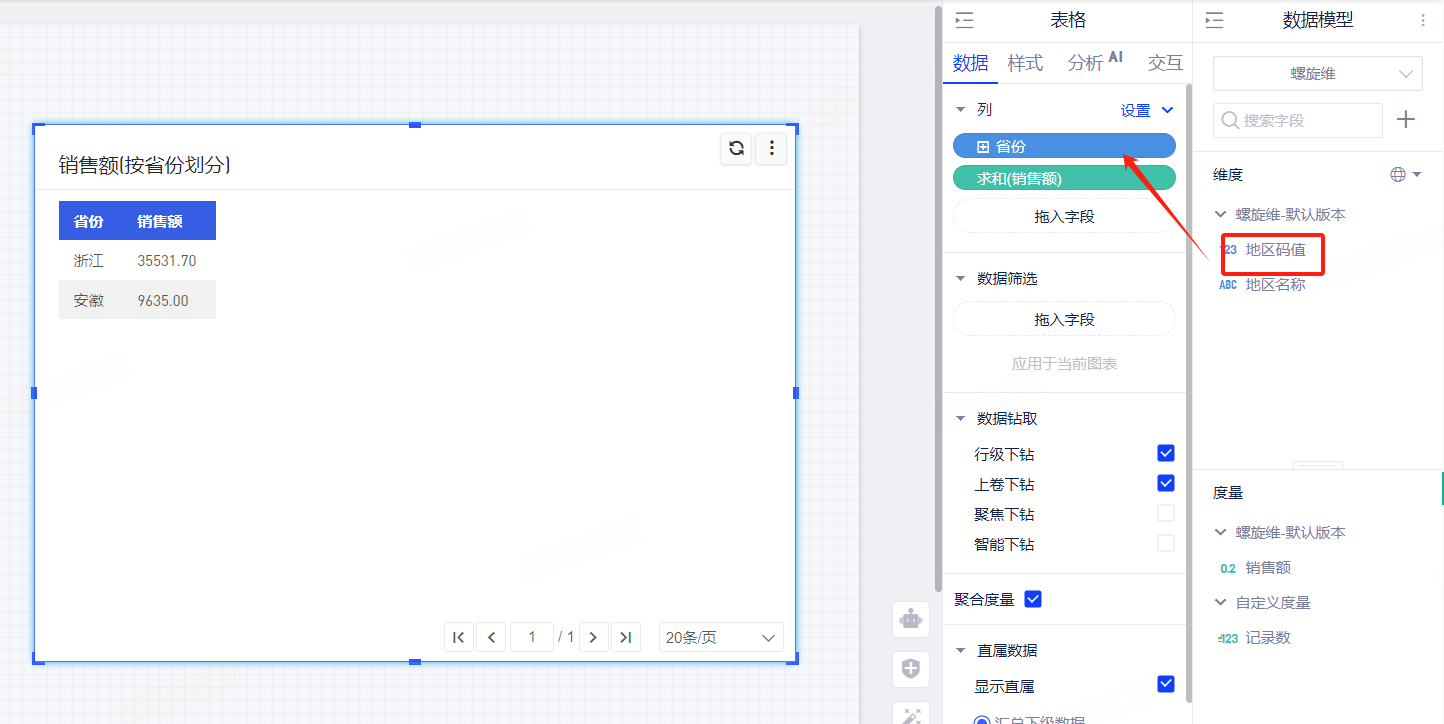 配置后将绑定码值的字段拖入表格中,会自动替换为维表的内容。