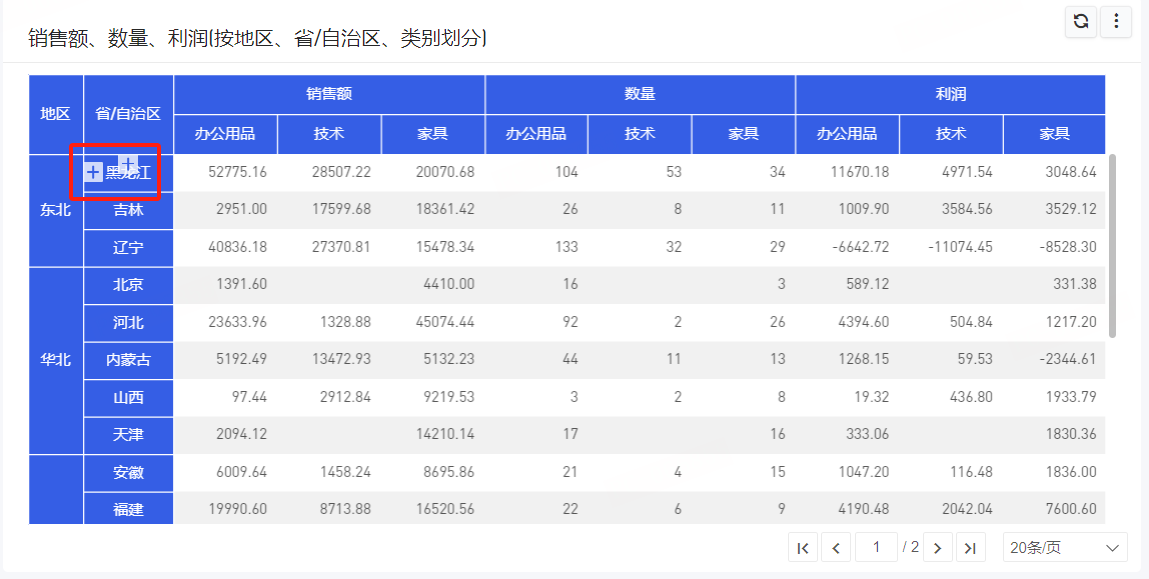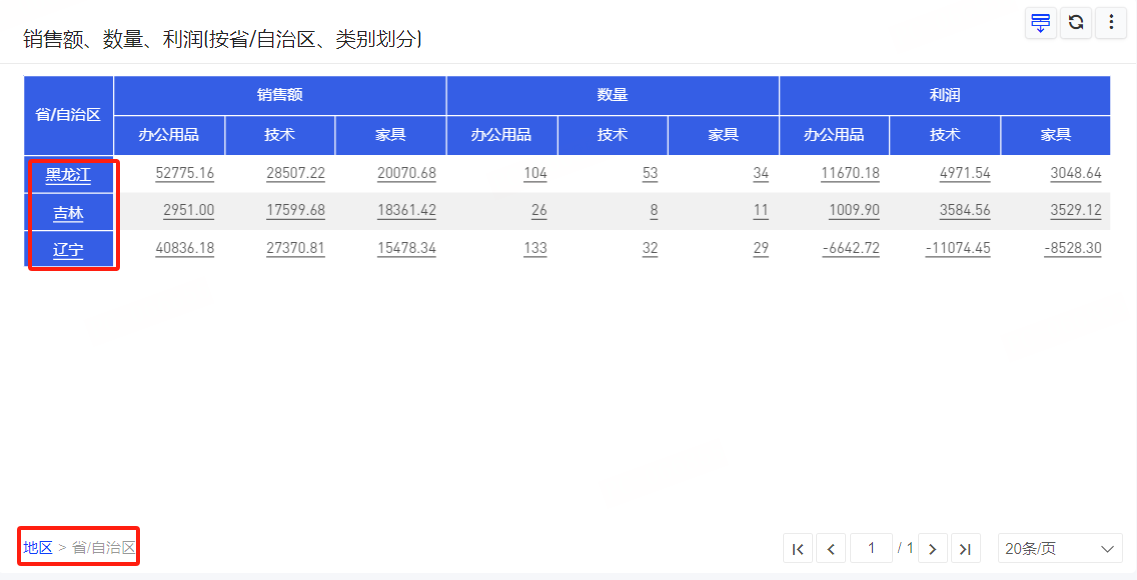 依据某些字段创建一个层级结构(eg:地区->省->城市),能够快速在图表内各层之间向上/下钻取。这里以地区->省->城市为例,步骤如下: