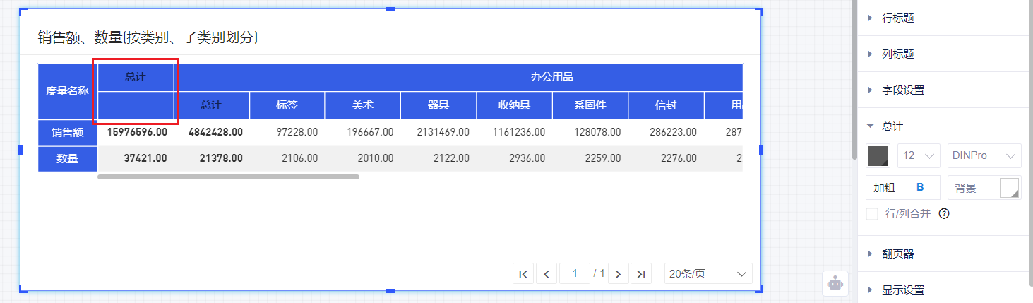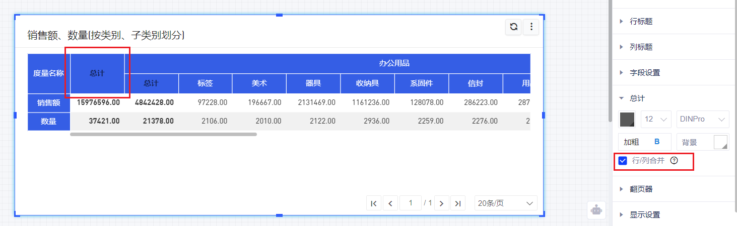(4)开启总计后,选择【样式】-【总计】-【行/列合并】,则会自动合并标题区空白行/列;