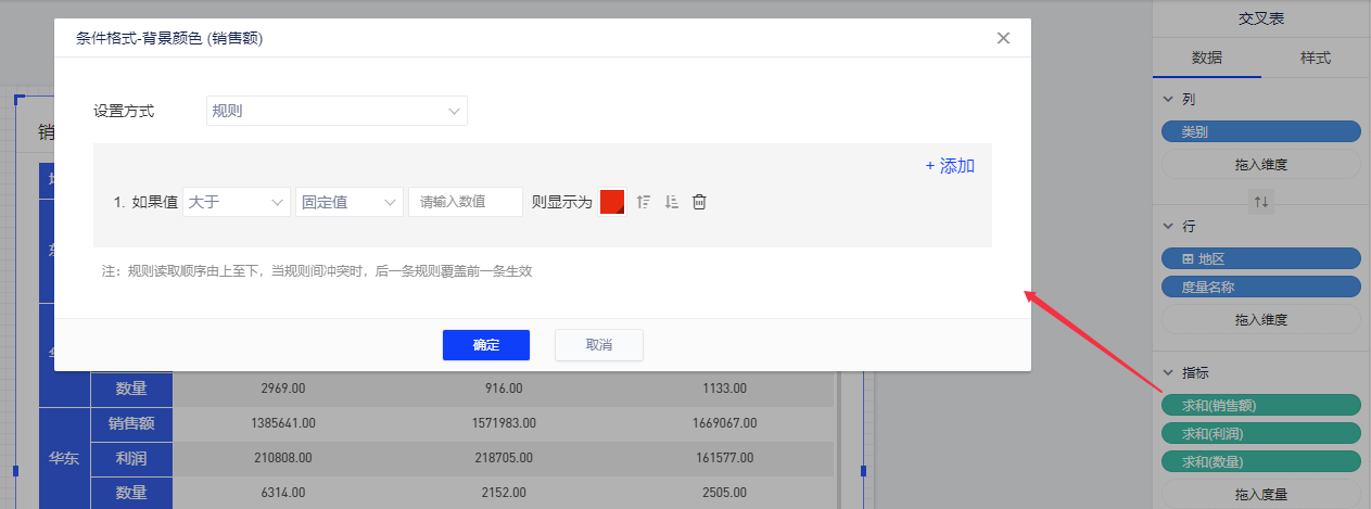 (1)与表格类似,您也可以对交叉表的指标设置条件格式并且支持带条件格式导出;