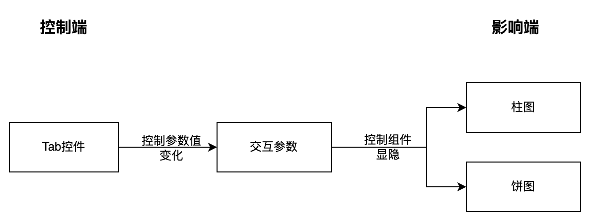 上方举的例子,Tab控件控制柱图/饼图的展示切换。是借助“交互参数”功能实现的。大致的逻辑关系如下图所示: