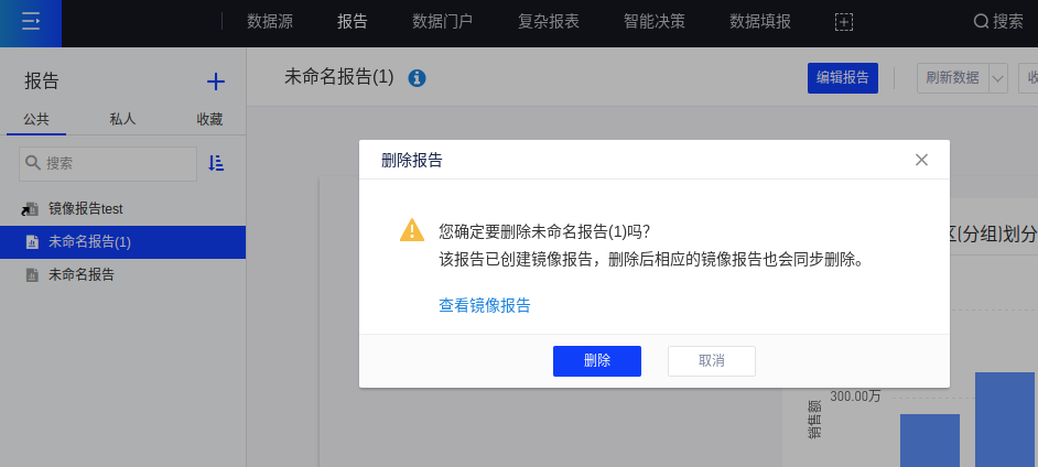 删除原报告:同步删除其镜像报告,删除时有相应提示;