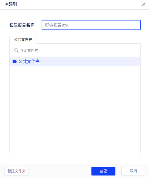 (2)在创建弹窗中,您需要对镜像报告进行重命名,并选择存储的文件夹(注:目前仅支持将镜像报告保存至公共文件夹);