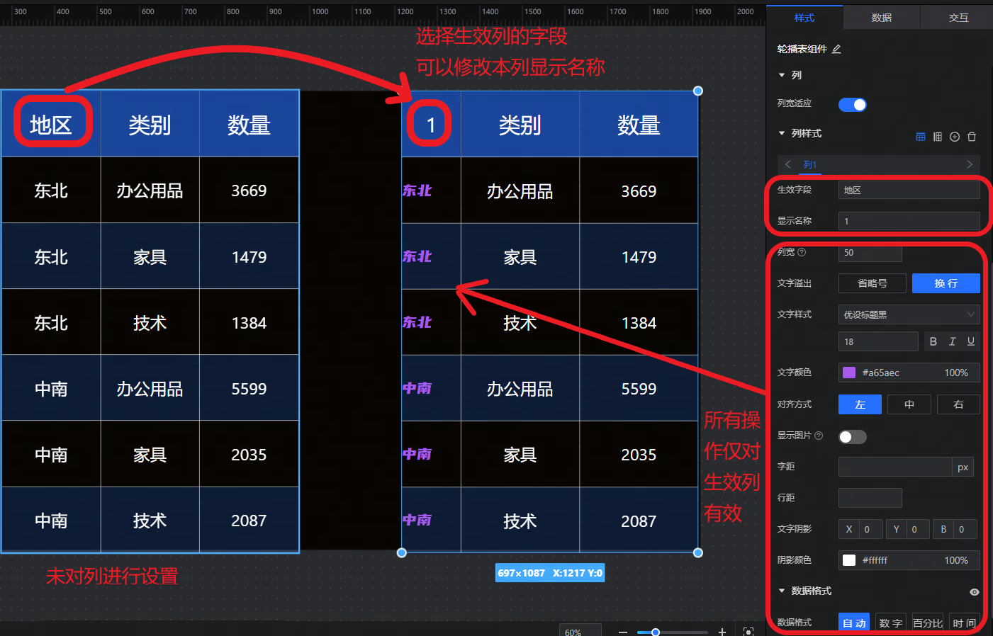 列:设置列宽适应、列样式。