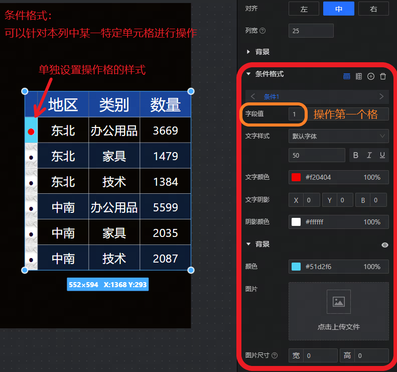 分为图形、卡片设置两个子Tab,用户可以在这此调整表格的颜色、字体、大小等。