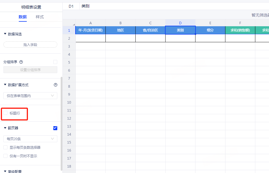 注意:若隐藏标题行,则不支持开启预览态筛选。