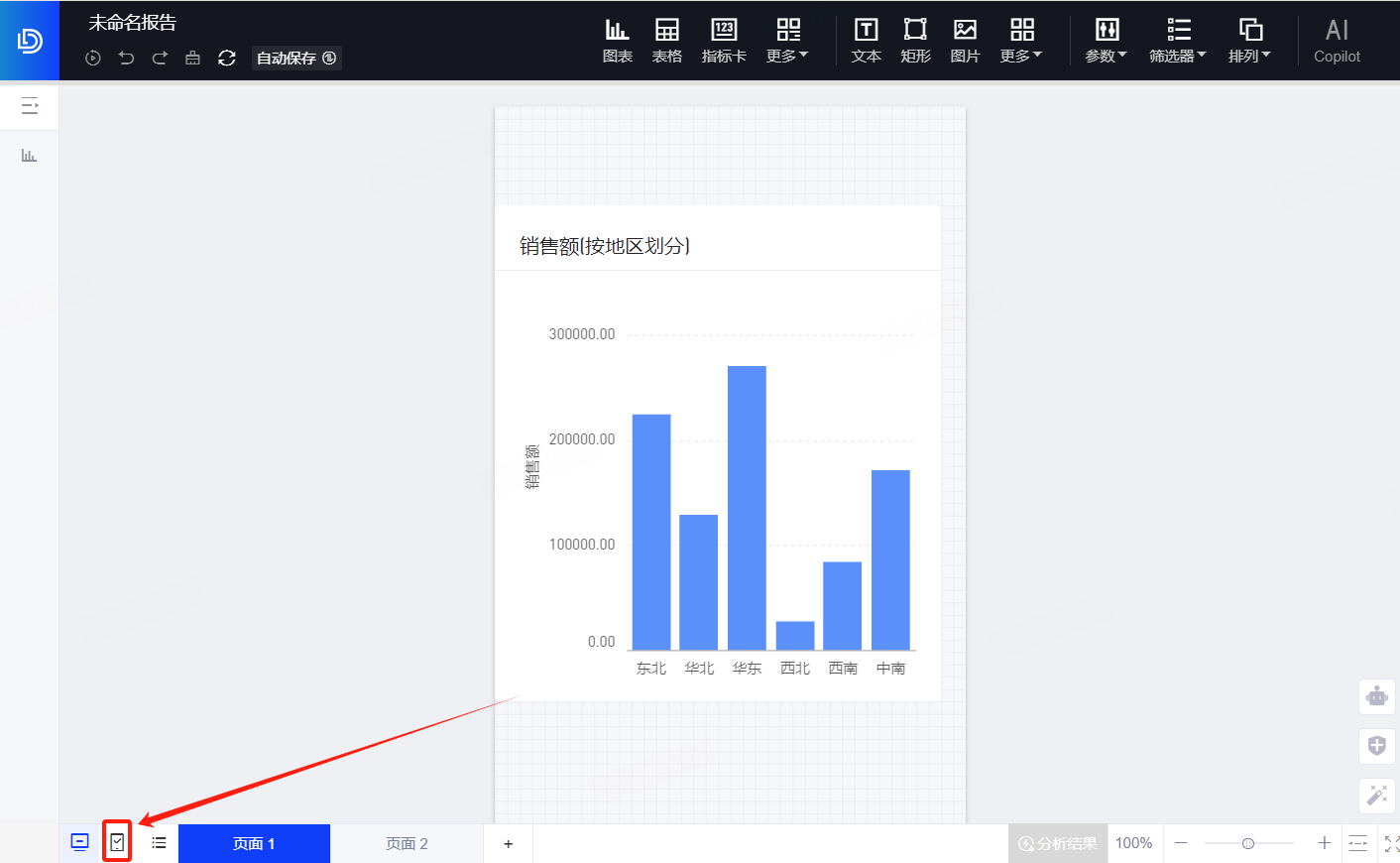 (2)完成报告编辑后,点击【移动端布局】,则进入移动端布局页面。