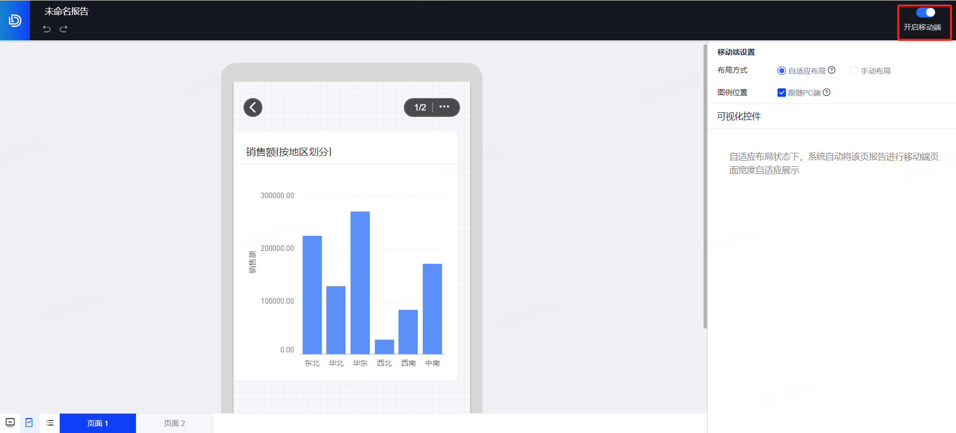 (3)对于移动端报告,系统默认自适应布局并开启【移动端】按钮,您可在手机app看到该报告。