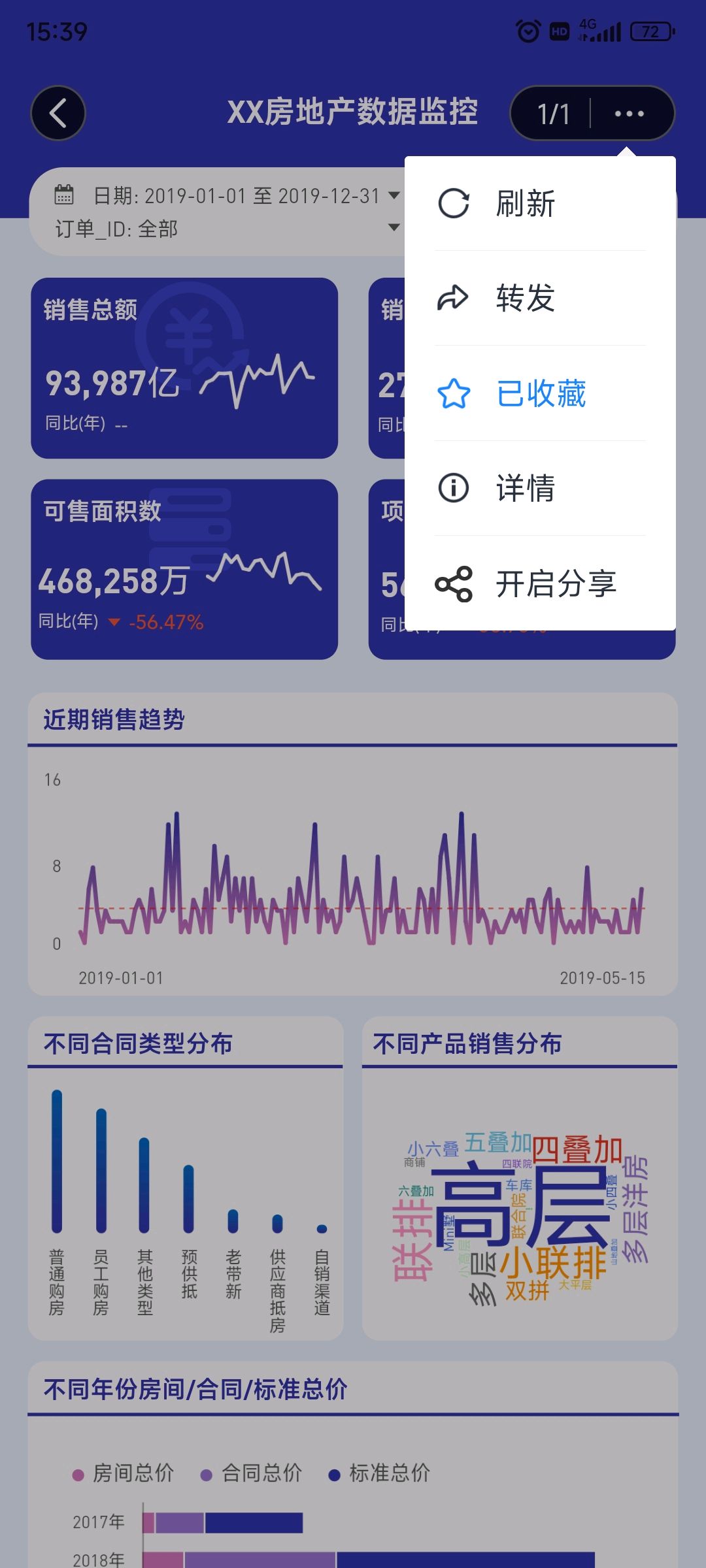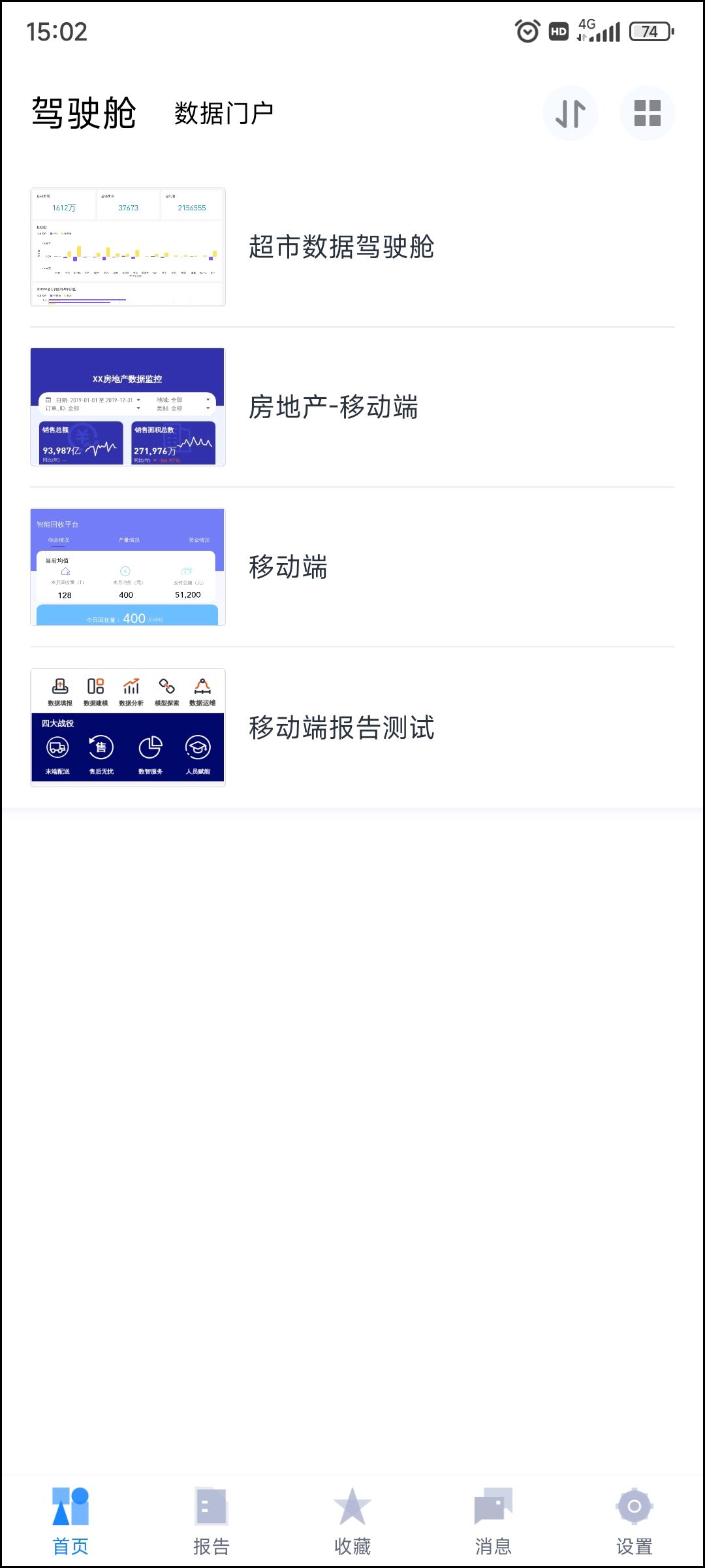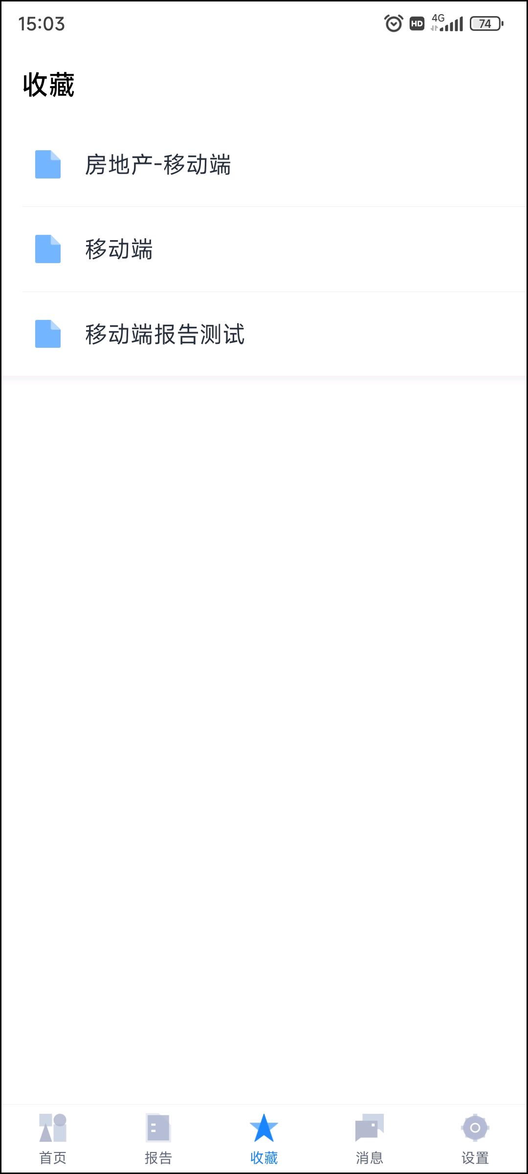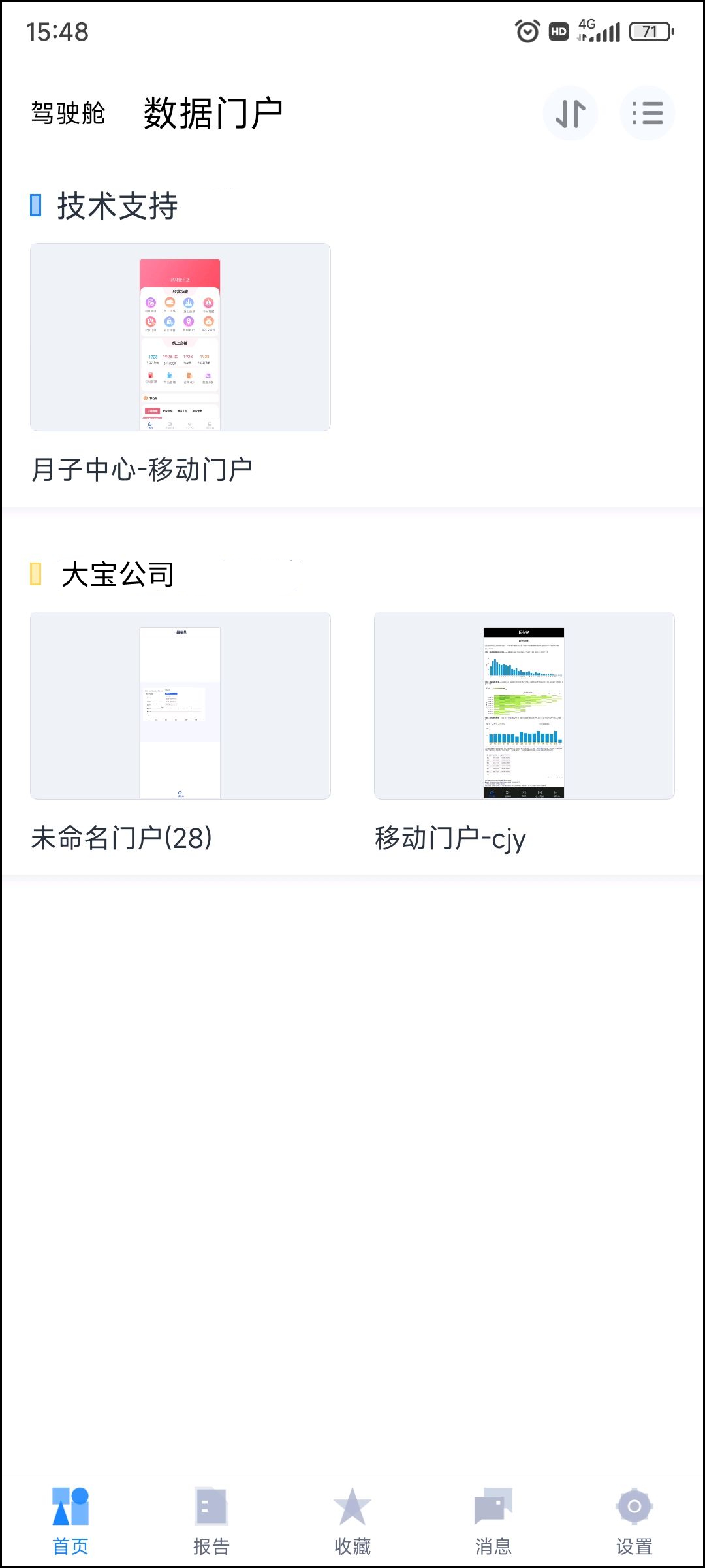 打开app并完成登录后,默认进入【首页】-【驾驶舱】tab页,会展示您发送到驾驶舱的所有报告。
