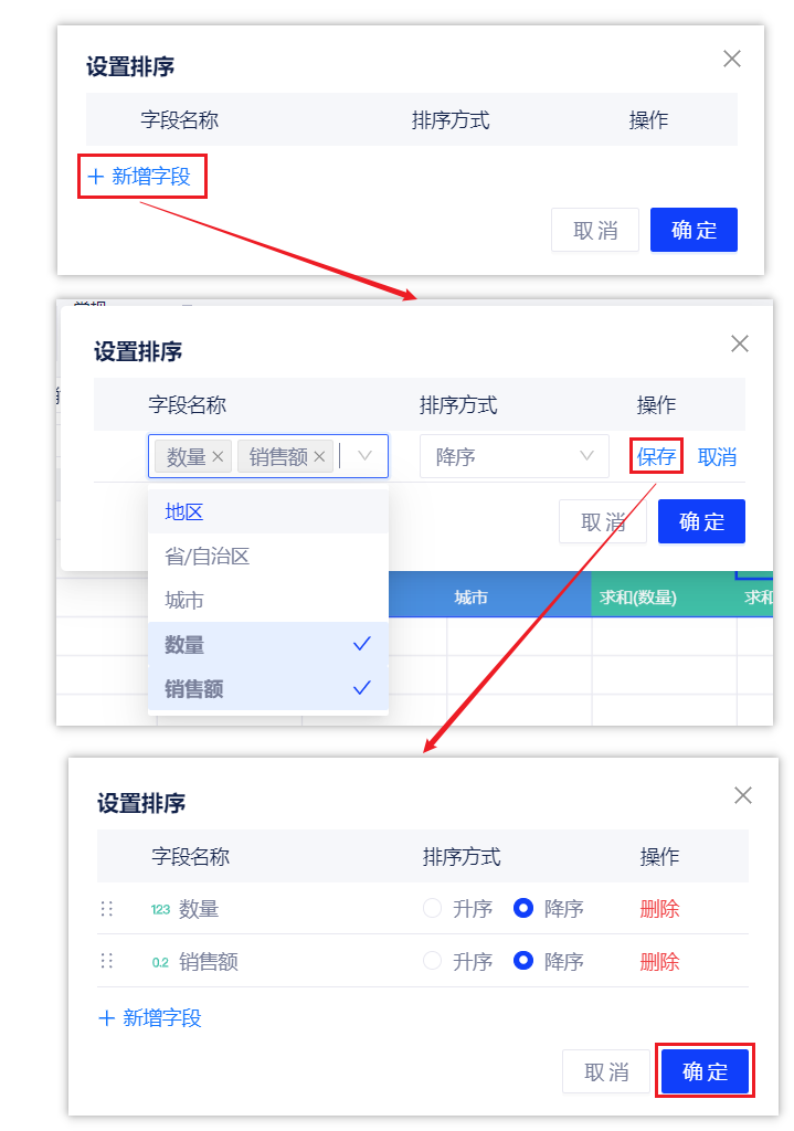 点击保存后可以继续新增排序方式,完成配置后点击确定。