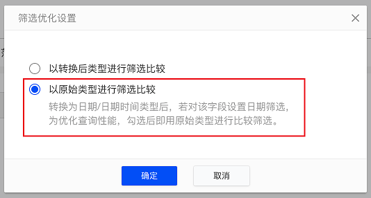 转换字段类型为日期/日期时间类型时,可选择用原始类型进行比较