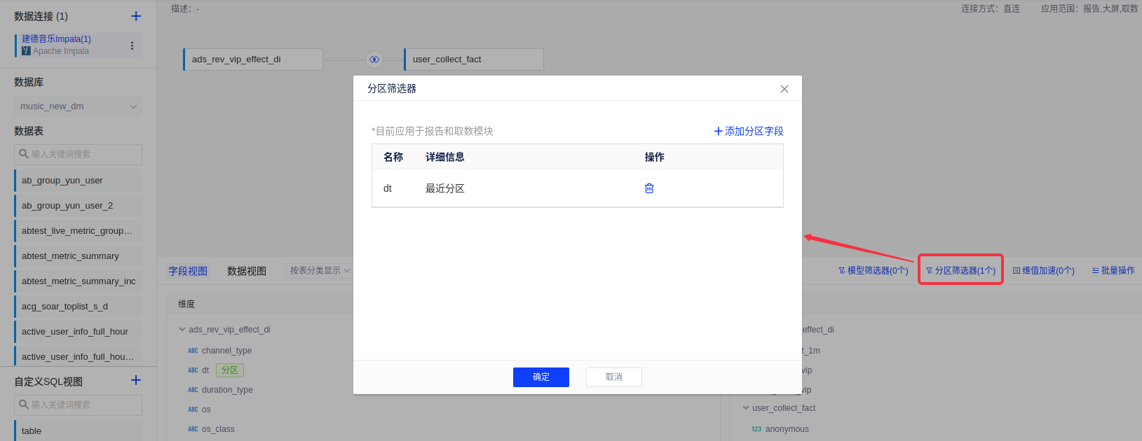 若您使用的是有数大数据平台impala数据源,则可以针对「分区筛选」进行优化操作。