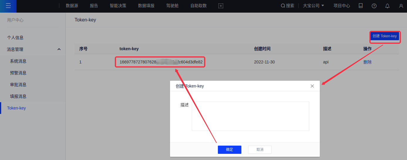点击右上角头像icon,然后在下拉菜单中选择用户中心,即可进入用户中心页面。您可在这里管理个人信息、消息通知和Token-key。