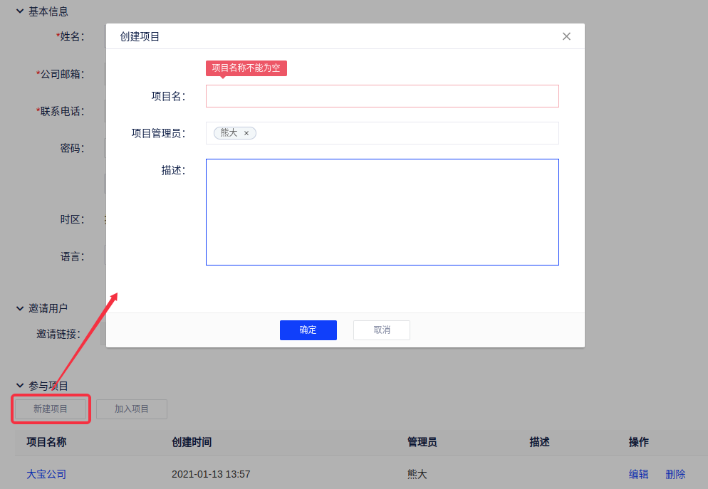 (3)参与项目,您可以在这里新建或加入项目,并通过项目列表对已加入的项目进行编辑或删除。