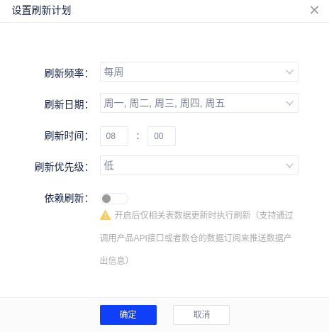 当同一时间点有很多的报告都需要执行刷新计划时,可能需要排队,最后刷新的执行时间会比设置的时间有一定的延后,对于比较重要的报告,可以将对应的刷新计划设置为高优先级,调度系统处理同时段的刷新计划时,将优先执行高优先级的刷新计划。