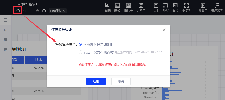 同时支持将报告还原至最近发布版本。