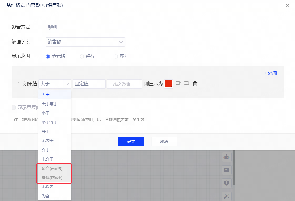 (1)报告图表:最高(前n项)和最低(前n项)的条件格式功能无法使用;
