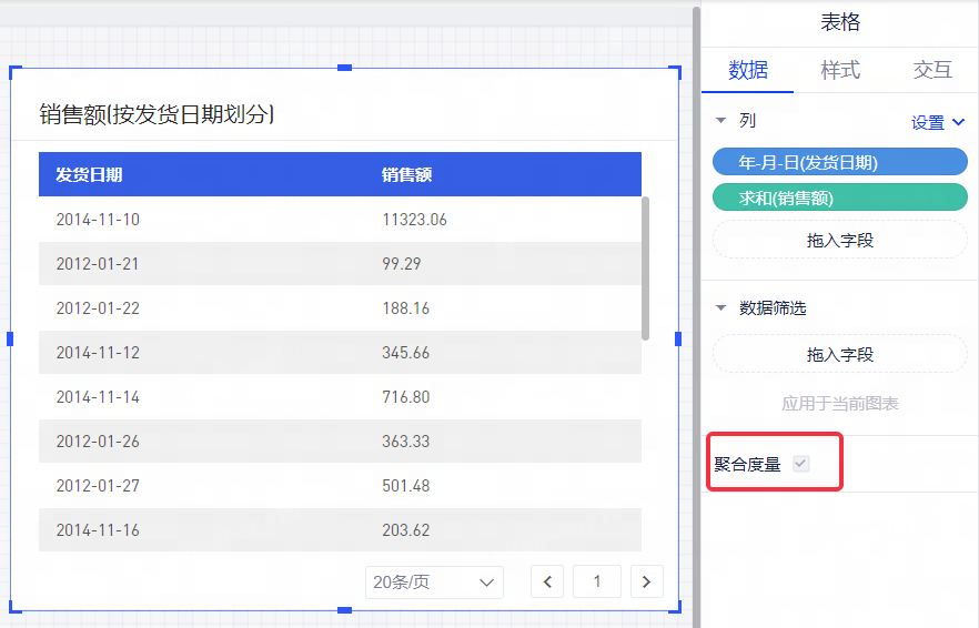 (5)表格组件度量默认为聚合,自动勾选聚合度量,不允许修改;