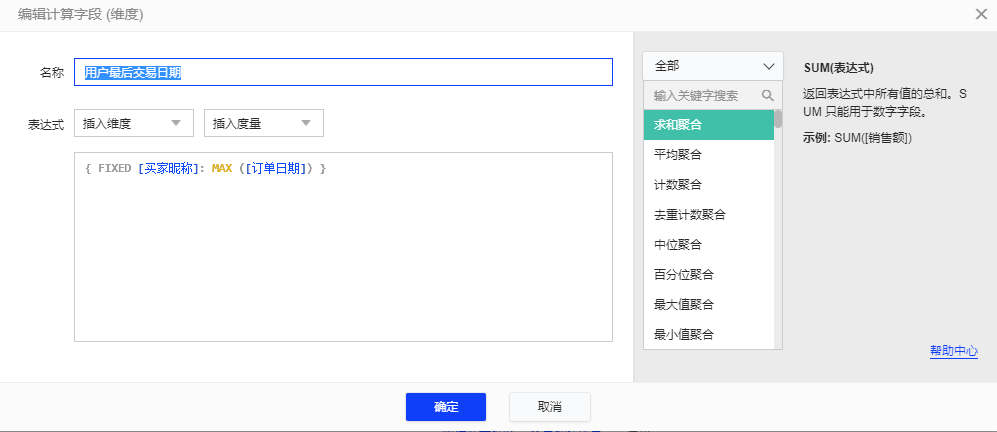用户最后交易日期={ FIXED [买家昵称]: MAX ([订单时间]) }