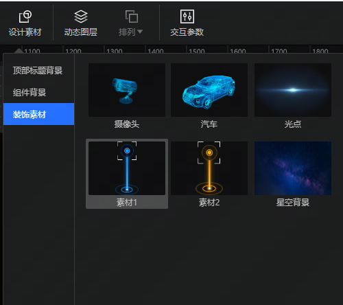 大屏提供一些基本的的设计素材供客户使用,客户可以利用素材自行搭建目的大屏。