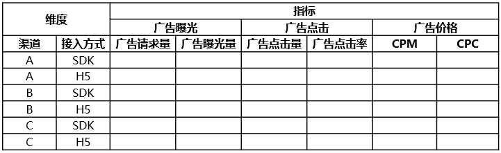 比如某公司广告收入突然下降,我们可以按照下表的方式,去穷举可能影响的维度、指标,通过观察具体数据,确定主要原因。