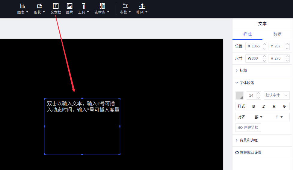 可以在大屏界面添加文本框并输入想要在界面中表达的文本内容。