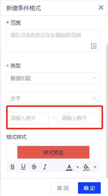 - 范围:支持选择一个数据应用范围,支持长按ctrl选择离散的单元格。