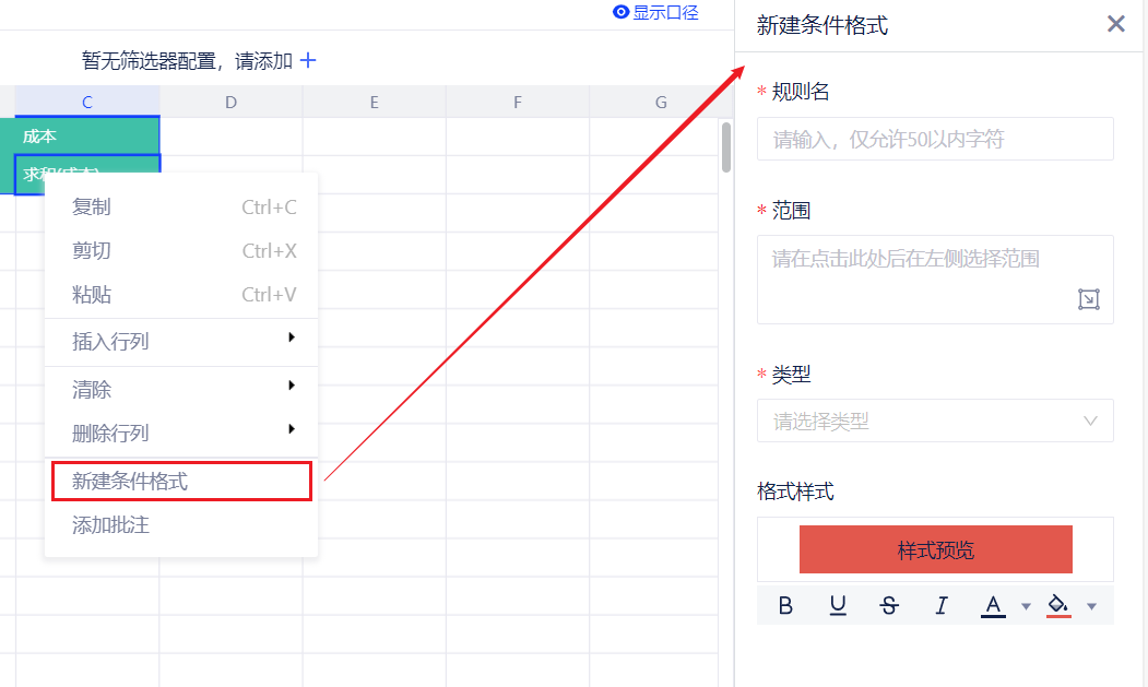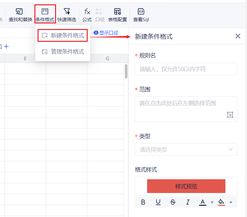 - 支持新增条件格式。