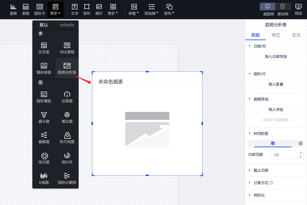 (1)选择[更多]-[趋势分析表],在画布上画出[趋势分析表];