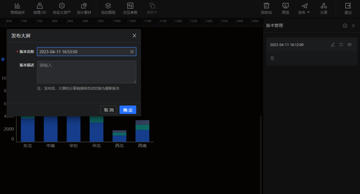 发布大屏,保存版本。