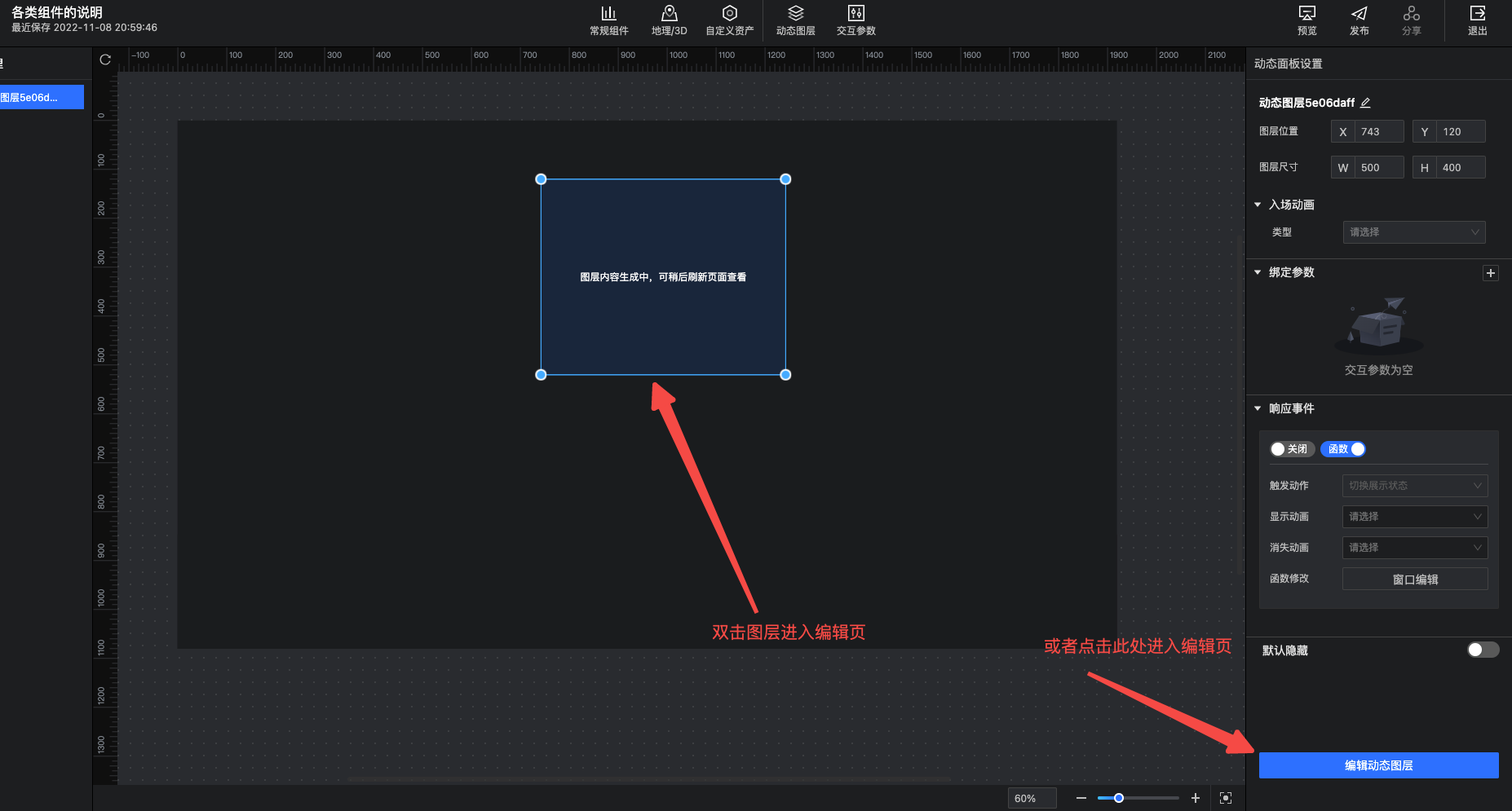 添加图层后,可双击图层,或者点击设置面板中的编辑按钮,进入图层的编辑页。