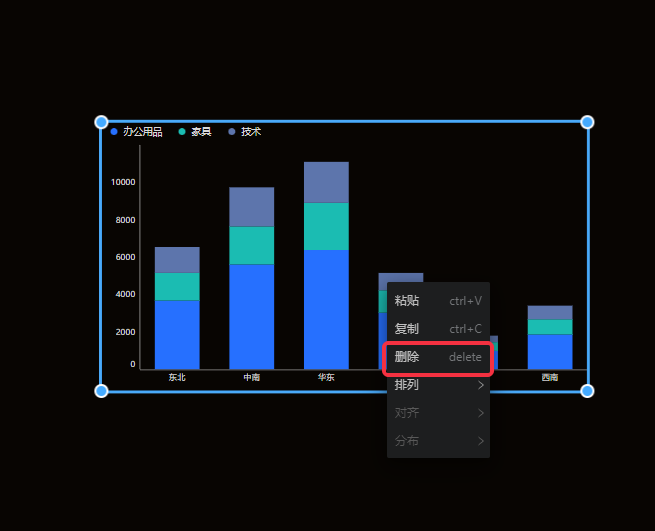 支持面板选中删除或快捷键删除组件。
